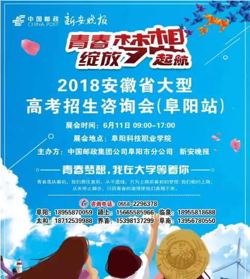 为使广大考生能更准确、更全面地了解各高校的招生政策和办学特色,阜阳邮政与新安晚报联合主办了一场高招咨询会,特邀请到全国近百所高校到现场,供家长咨询。