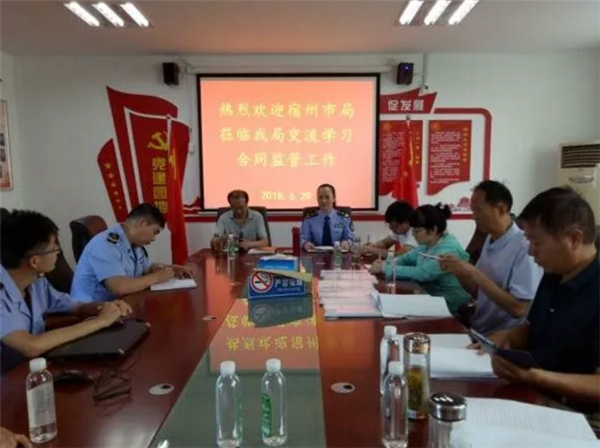 为加强合同监管工作,加大合同违法案件的查处力度, 6月29日市局合同科及各县区合同工作负责人一行7人,赴阜阳市工商局考察学习合同案件查处工作经验。