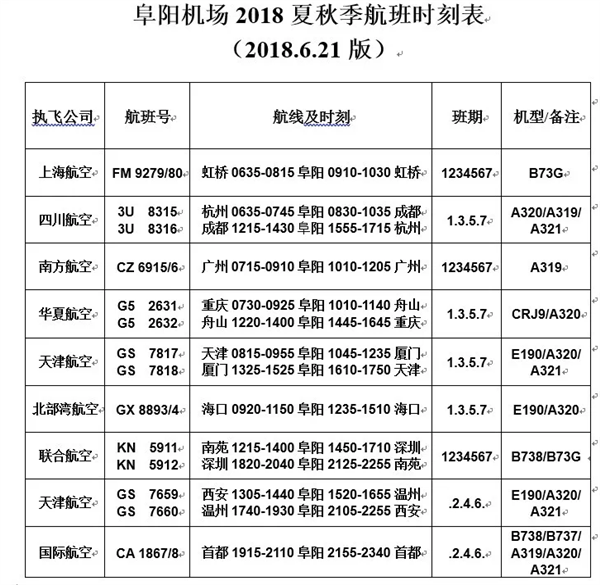 截至目前,阜阳机场航线已达到15条,航班通达城市14个,每周保障航班起降64架次。