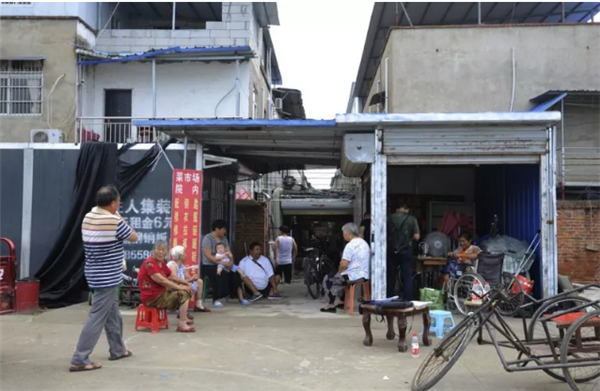 在杨庄一处居民居住区,社区工作人员搭建了两处简易房,一左一右,就像是这处居住区的大门。这两座简易房,便是倪国林夫妇每天“工作”的所在。