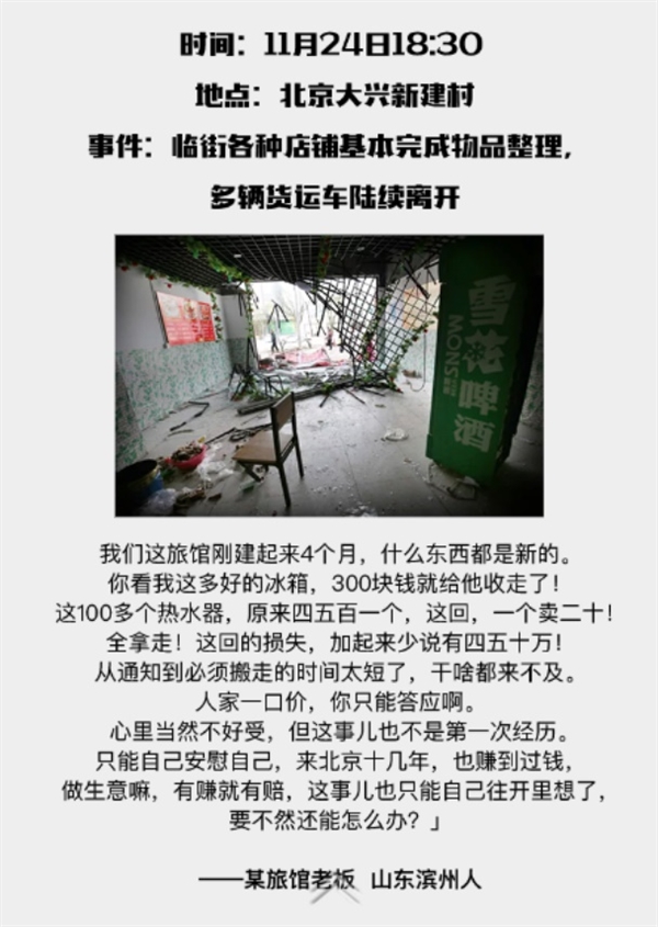 因为大兴的一场火灾事故,北京这个神奇的首都,开始了大规模的外来人口整治,拉开了在京漂泊和拼搏的打工一族的大迁移序幕!看完了么?这就是现实的!